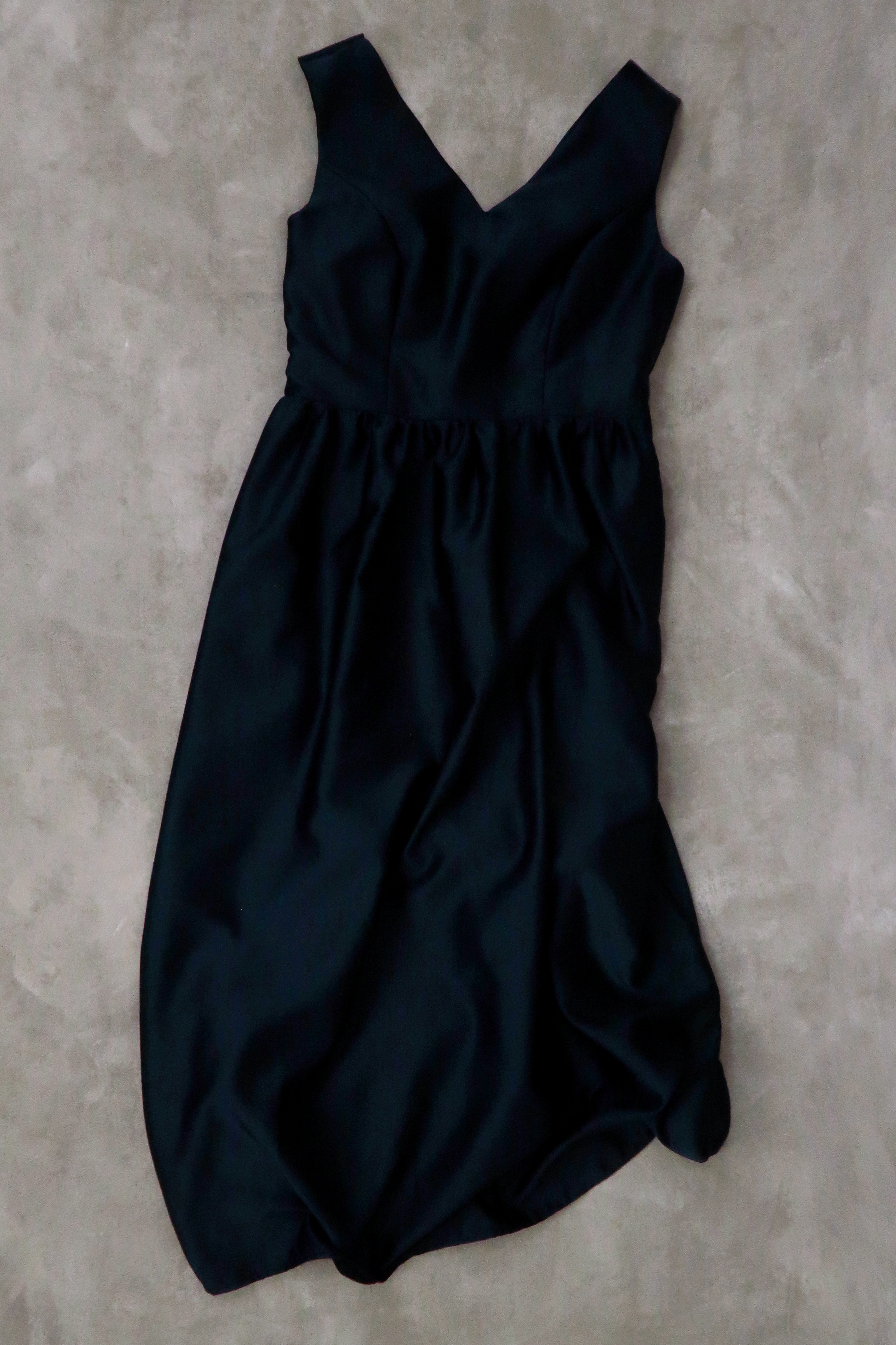 After a couple of on and off months of sewing, we arrived at the final product! A navy dress with v-necks and a gathered skirt. I was pretty happy with how this one came out, with one exception. I’m a fan of the top, I’m a fan of the colour, I’m a fan of the gathered skirt, but I don’t love how the back looks when I’m standing. For some reason, the portion where the zipper sits tucks between my legs, as if im wearing a long skort (skirt in the front, pants in the back). Maybe its because there was too much fabric at the back, maybe the zipper was too heavy and caused it to tuck between my legs, I’m not super sure at the moment. But I guess its not so bad, and I can’t see the back anyways, am I right? Nonetheless, I had fun making this dress, and I’m quite proud that I was able to work in a lining for the first time to make this dress what I wanted it to be.